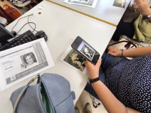 Tras la experiencia del paseo invitaron a los mayores al instituto a realizar talleres técnicos: hicieron un taller sobre Chat GPT y otro en el que el alumnado enseñó a poner en movimiento fotos antiguas de los mayores.